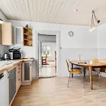 Pet Friendly Home In Gredstedbro is fitted with an equipped kitchen complete with coffee and tea making facilities, a refrigerator, and kitchenware.